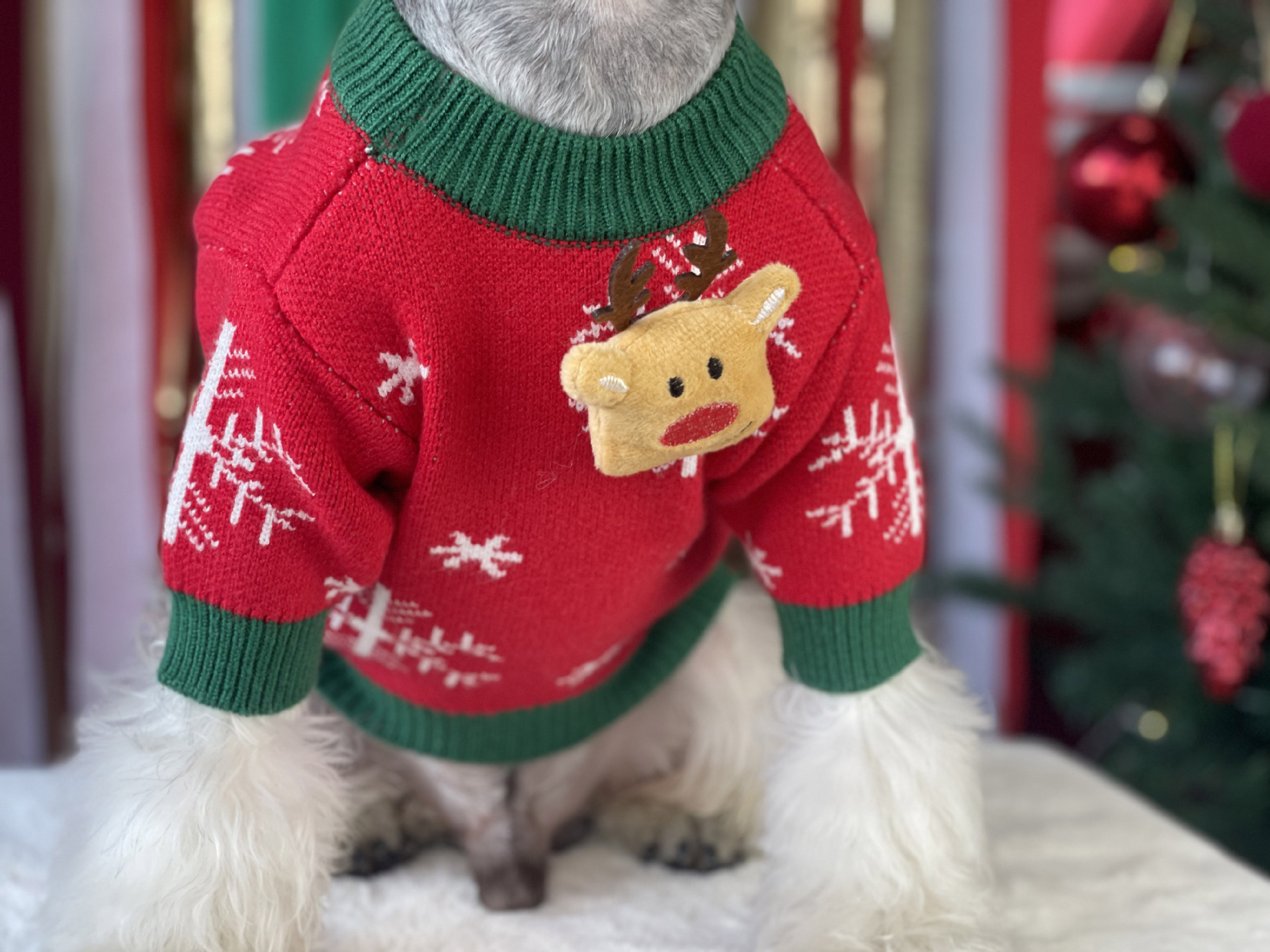 Make this holiday season special for your pet by dressing them in this delightful sweater. They’ll not only look adorable but also stay warm and comfortable, ready for all the festive fun!